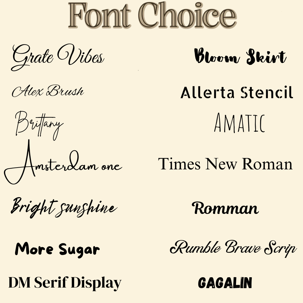 Tip: Elegant scripts (e.g., Grate Vibes, Bloom Skirt) pair beautifully with weddings or birthdays, while bold display fonts (Gagalin, Allerta Stencil) pop on playful designs.