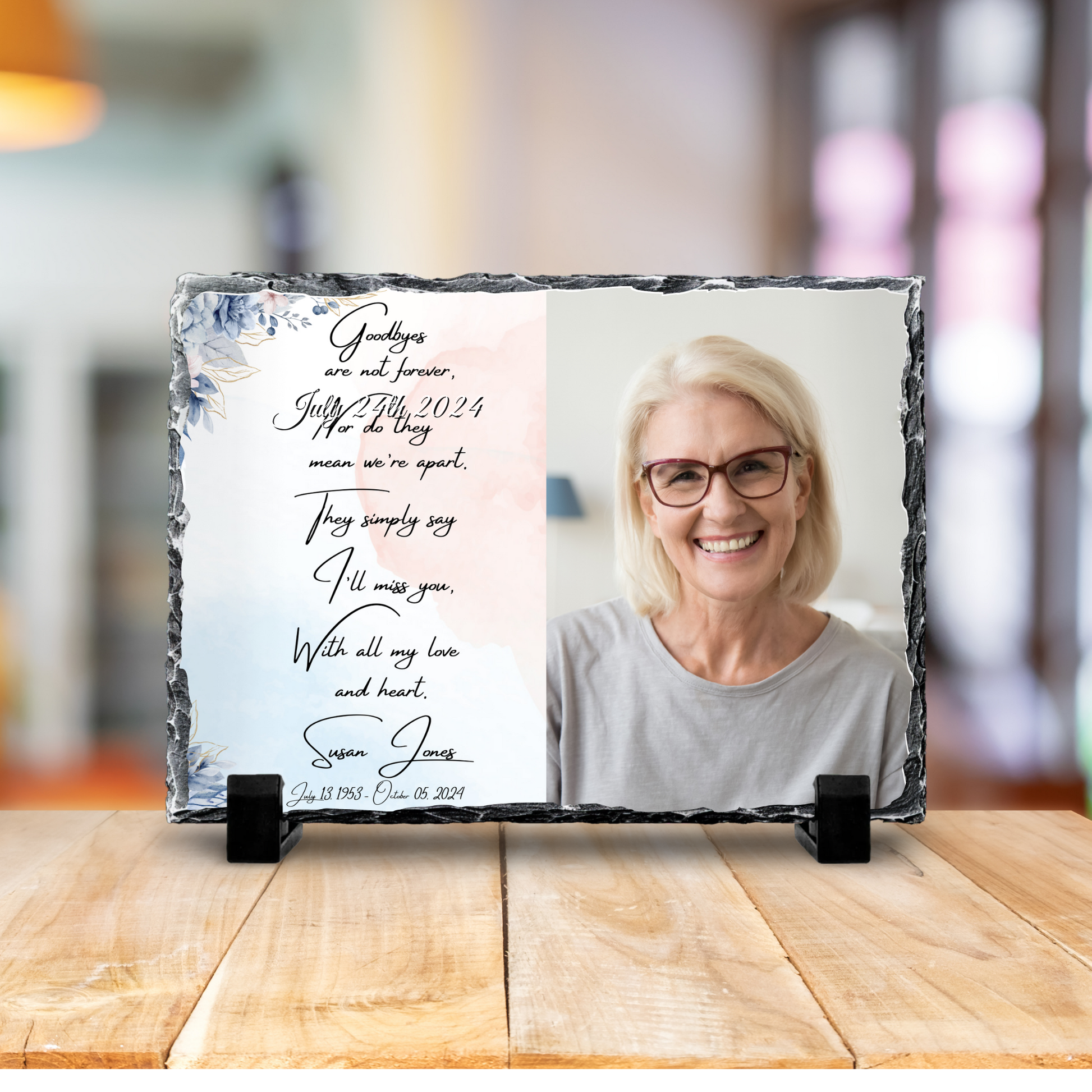 Hold their smile close with a one-of-a-kind slate keepsake that blends rugged beauty and heartfelt tribute. Each plaque is hewn from natural rock, so no two edges or speckles are ever alike—just like the bond you shared.