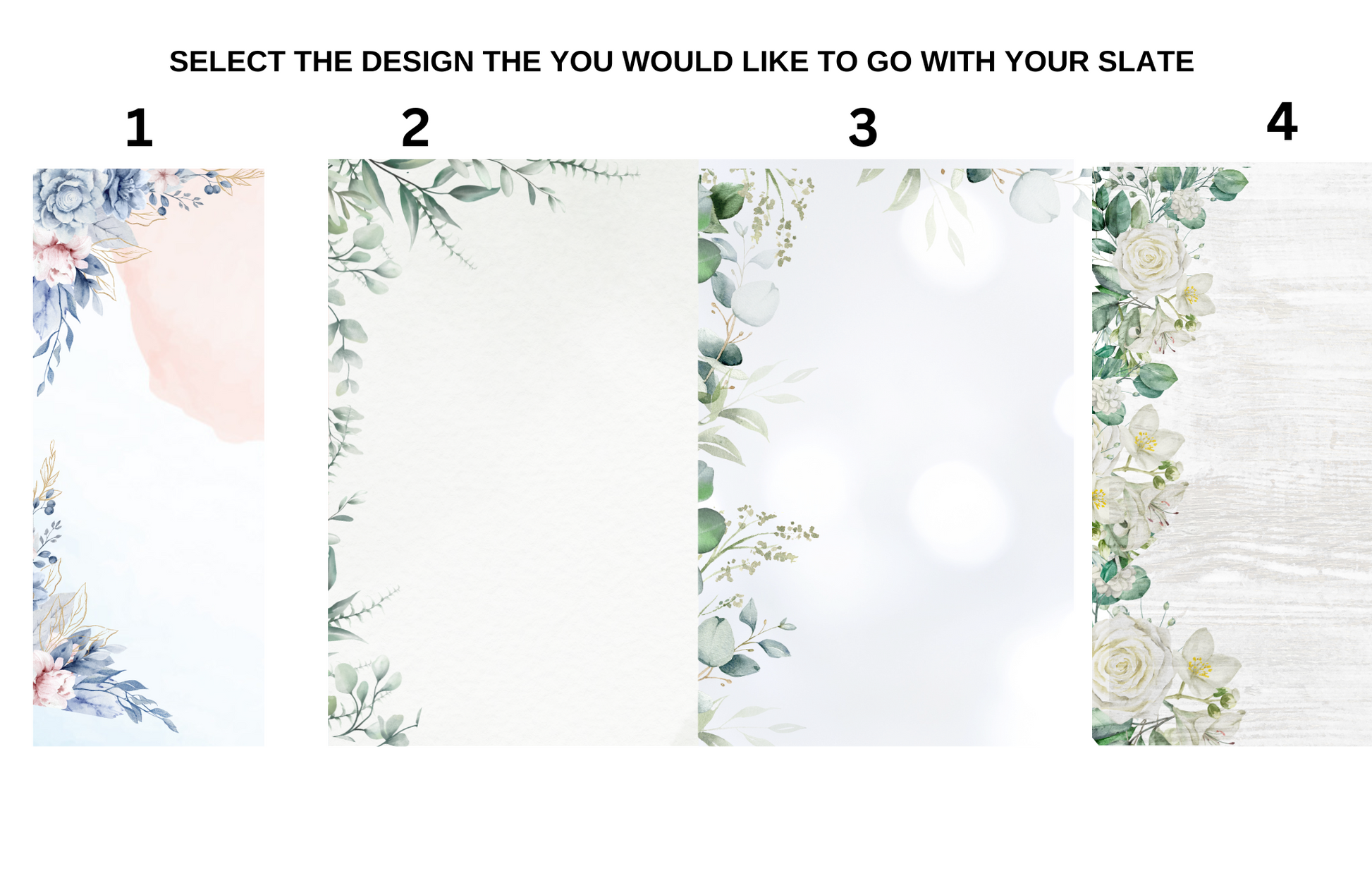 Each plaque is hand-cut from natural slate; please allow a margin of ± ¼ in (± 6 mm) on all listed dimensions.