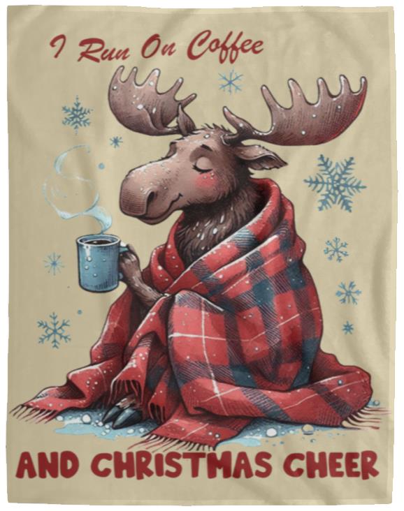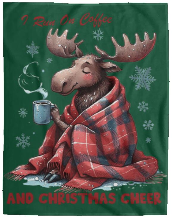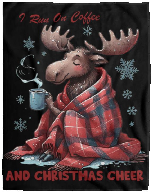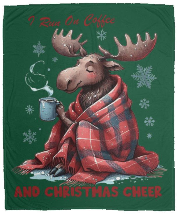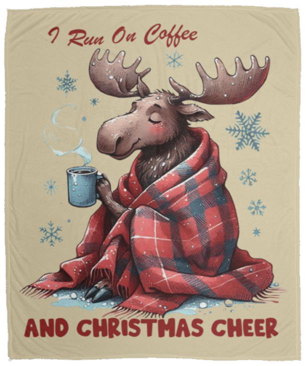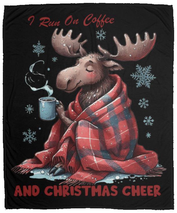 - This cozy blanket runs on two things: coffee and Christmas cheer. Made with the softest materials, it's perfect for snuggling up on those chilly holiday mornings. Stay warm and energized all season long with this must-have addition to your winter decor.