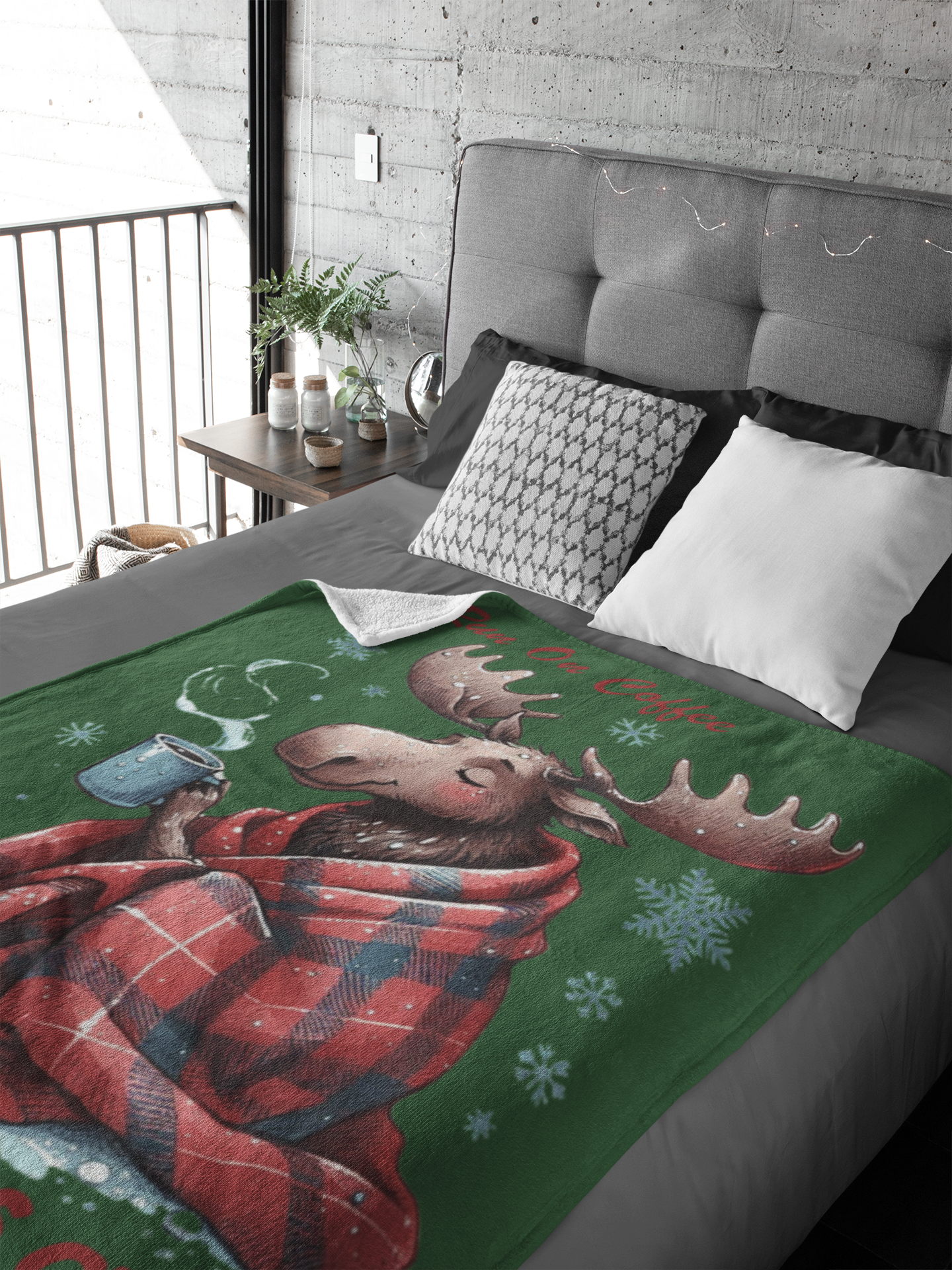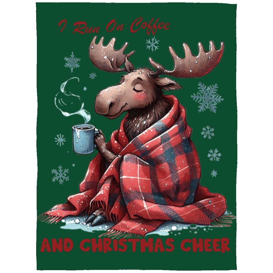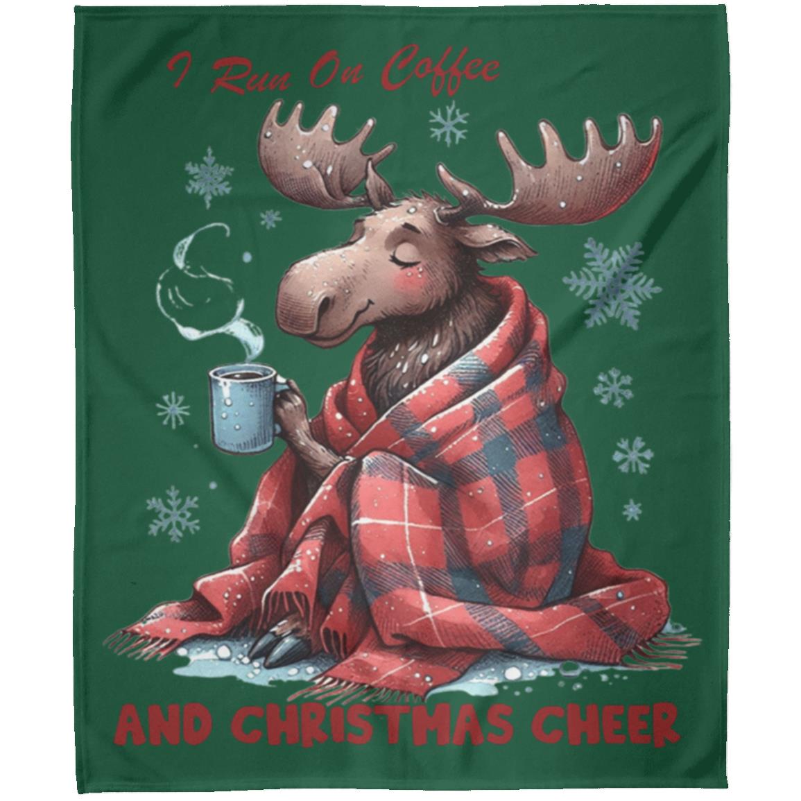 - This cozy blanket runs on two things: coffee and Christmas cheer. Made with the softest materials, it's perfect for snuggling up on those chilly holiday mornings. Stay warm and energized all season long with this must-have addition to your winter decor.